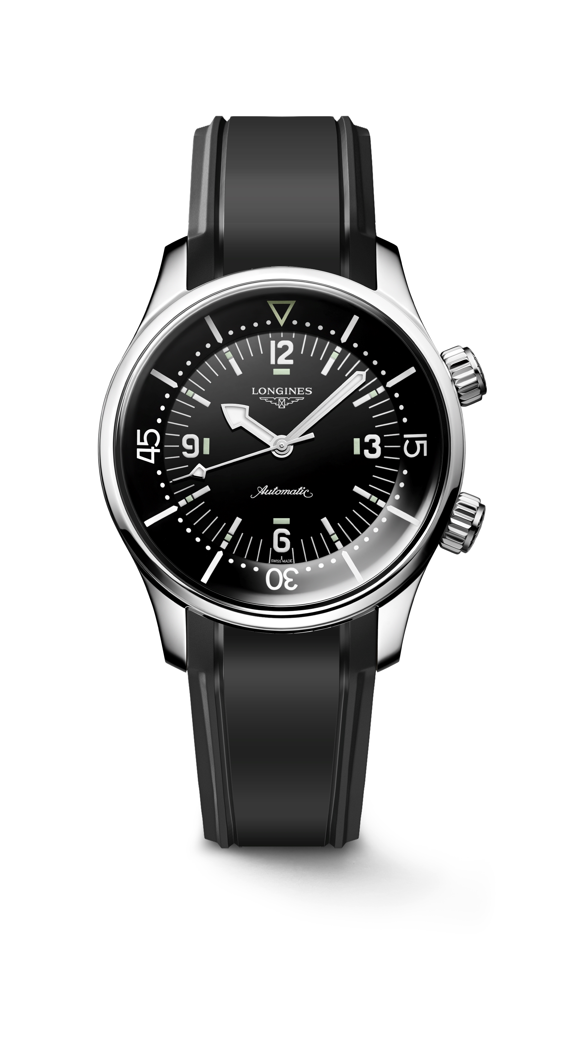 Longines Legend Diver Black Dial Rubber Strap