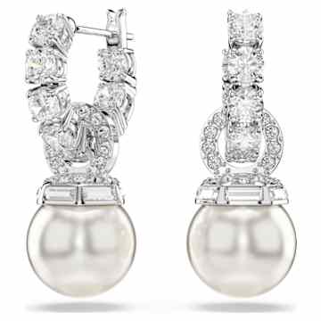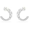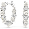 Swarovski Matrix hoop earrings Crystal pearl, Round cut, White, Rhodium plated