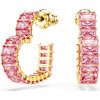 Swarovski Matrix hoop earrings Baguette cut, Heart, Small, Pink, Gold-tone