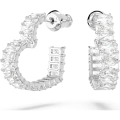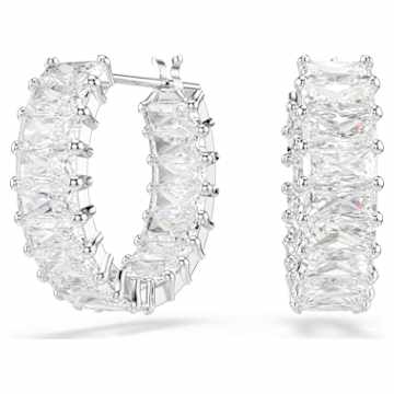 Swarovski Matrix hoop earrings Baguette cut, White, Rhodium plated