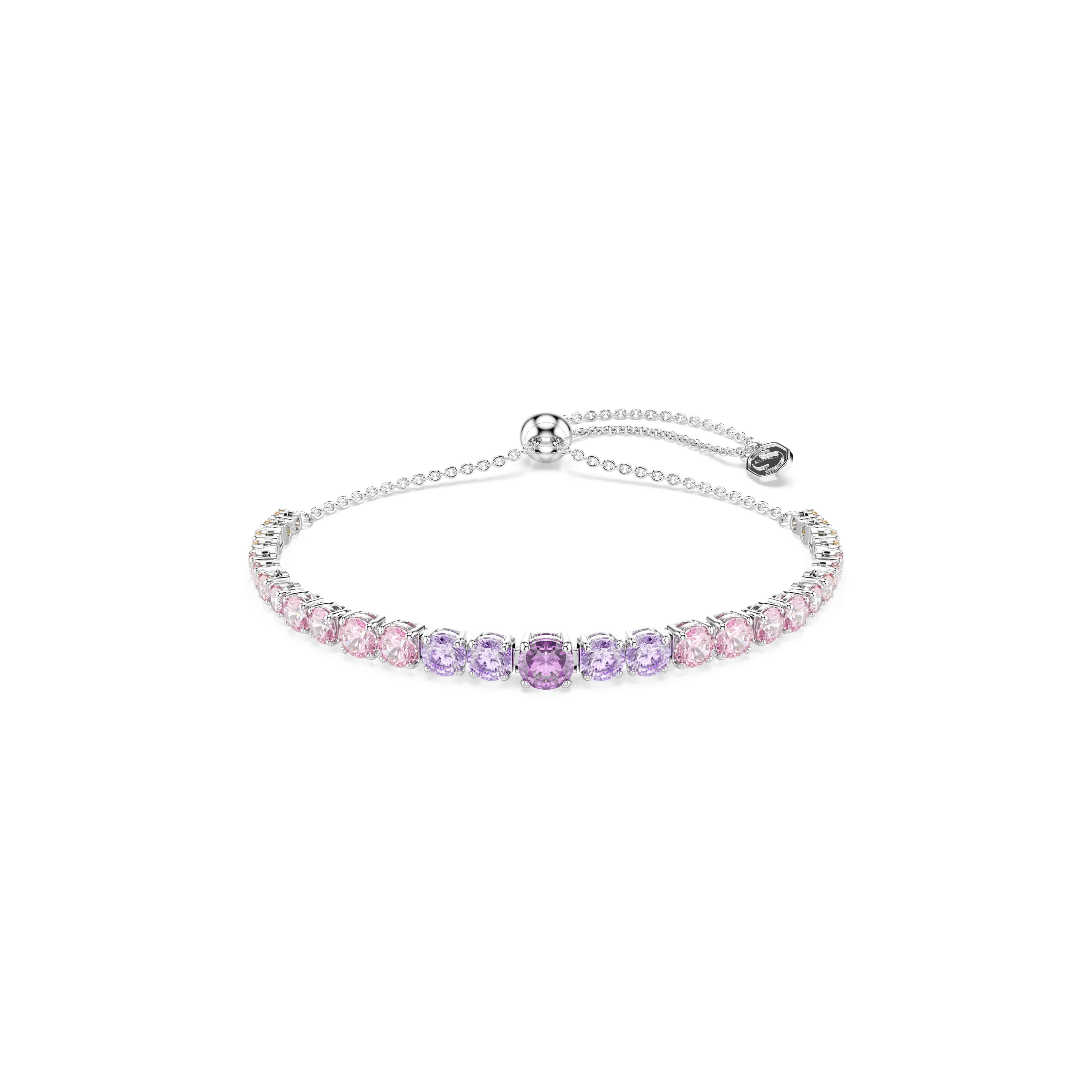 Pastel color is used to full effect in this classic Matrix bracelet. The rhodium plated design features a strand of round cut crystals that transition through a gradient of sizes in pink, purple, and yellow shades. Pair it with the matching earrings ...