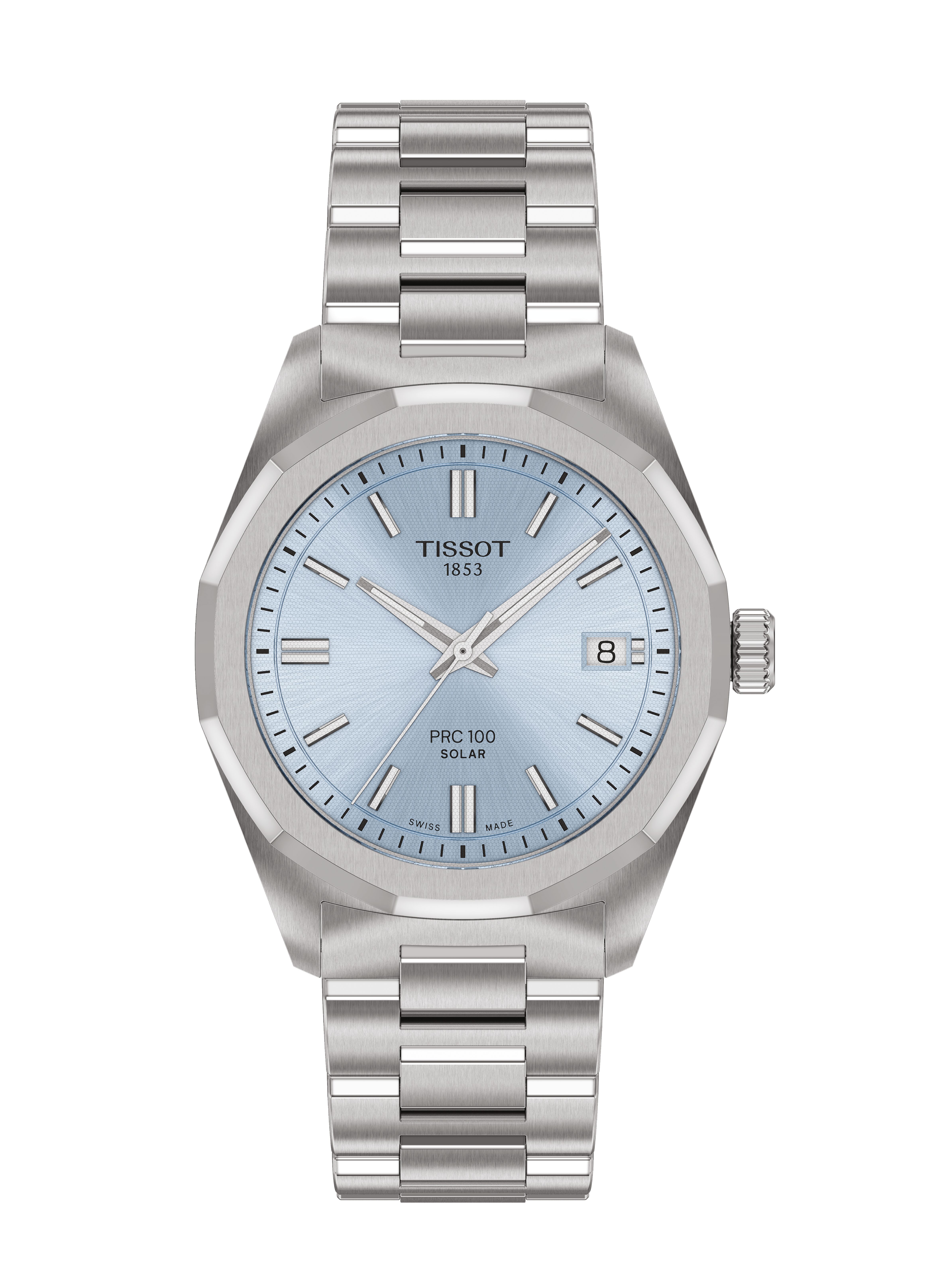Tissot PRC 100 Solar 34mm Ice Blue Dial SS Strap