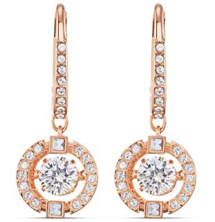 This pair of Swarovski pierced earrings from our Sparkling Dance collection is marvelously beautiful. The central dancing stone appears to float within its rose-gold tone plated setting, which is embellished with shimmering pavé. A lovely gift for s...