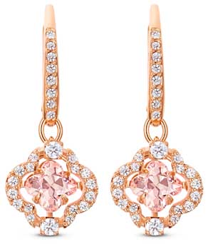 This pair of pierced earrings by Swarovski features a charming floral design. Each piece is highlighted by a pink 'dancing' stone, which is beautifully complemented by a rose-gold tone plated setting and clear crystal pavé. A great gift for a specia...