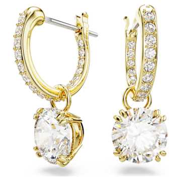 Swarovski Stilla drop earrings Round cut, White, Gold-tone plated