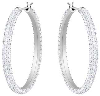 Find the perfect gift for Mother’s Day or any other occasion with this timeless pair of hoops, decorated with crystal pavé for that special Swarovski sparkle. The delicate, rhodium-plated design is easy to wear with any outfit, from day to evening...