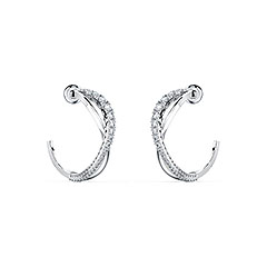 This pair of pierced earrings by Swarovski is a brilliant embodiment of a puristic style with a twist. Each earring consists of two elegantly curving lines intertwined with each other, one sparkling with the bright brilliance of gleaming white stones...