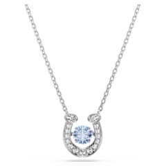 Swarovski Symbolica pendant Round cut, Pave, Horse shoe, Blue, Rhodium plated
