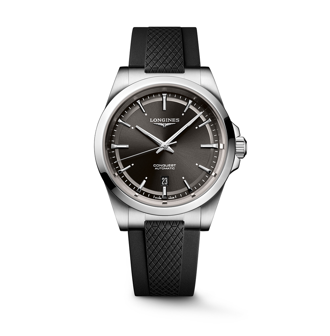 Longines Conquest Sunray Black Dial Black Rubber Strap