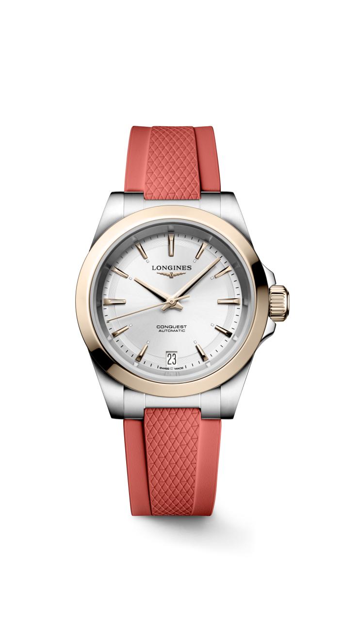 Longines Conquest Sunray Pink Dial Rubber Strap