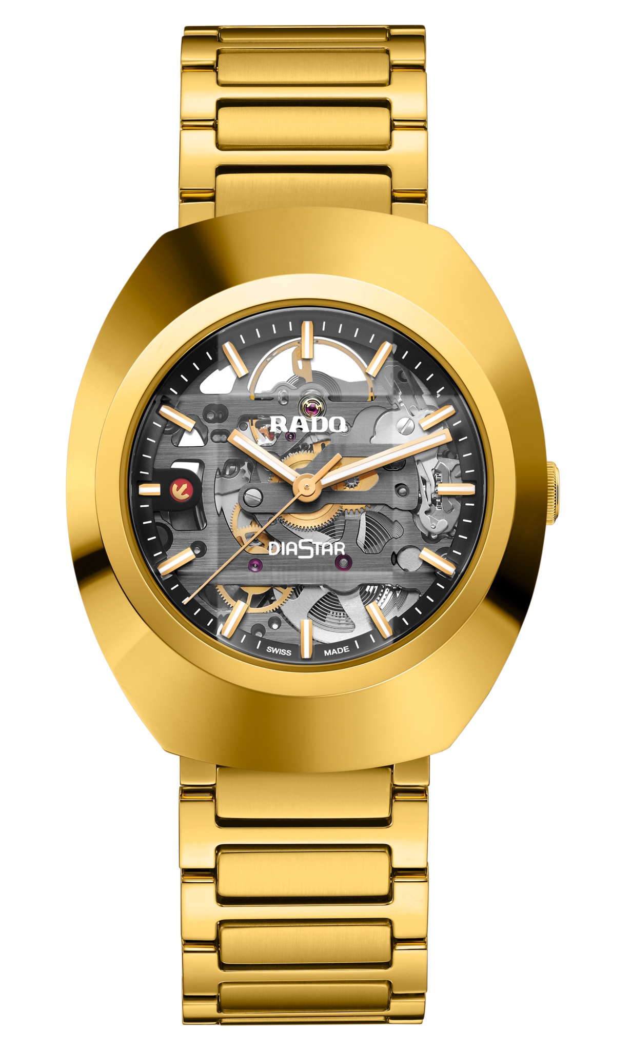 RADO DiaStar Original Automatic Skeleton Blk Dial Yellow SS Strap
