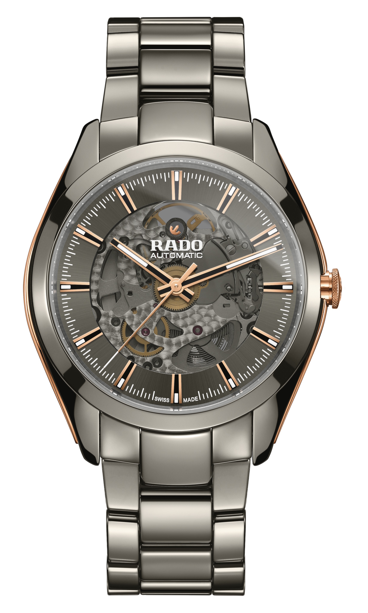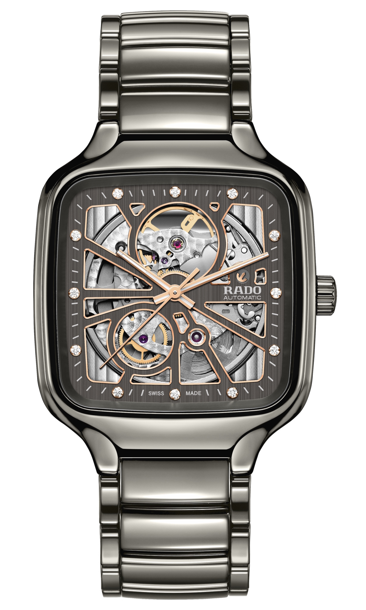 RADO True Square Automatic Open Heart Grey Rose Gold Dial Plasma High Tech Ceramic Strap