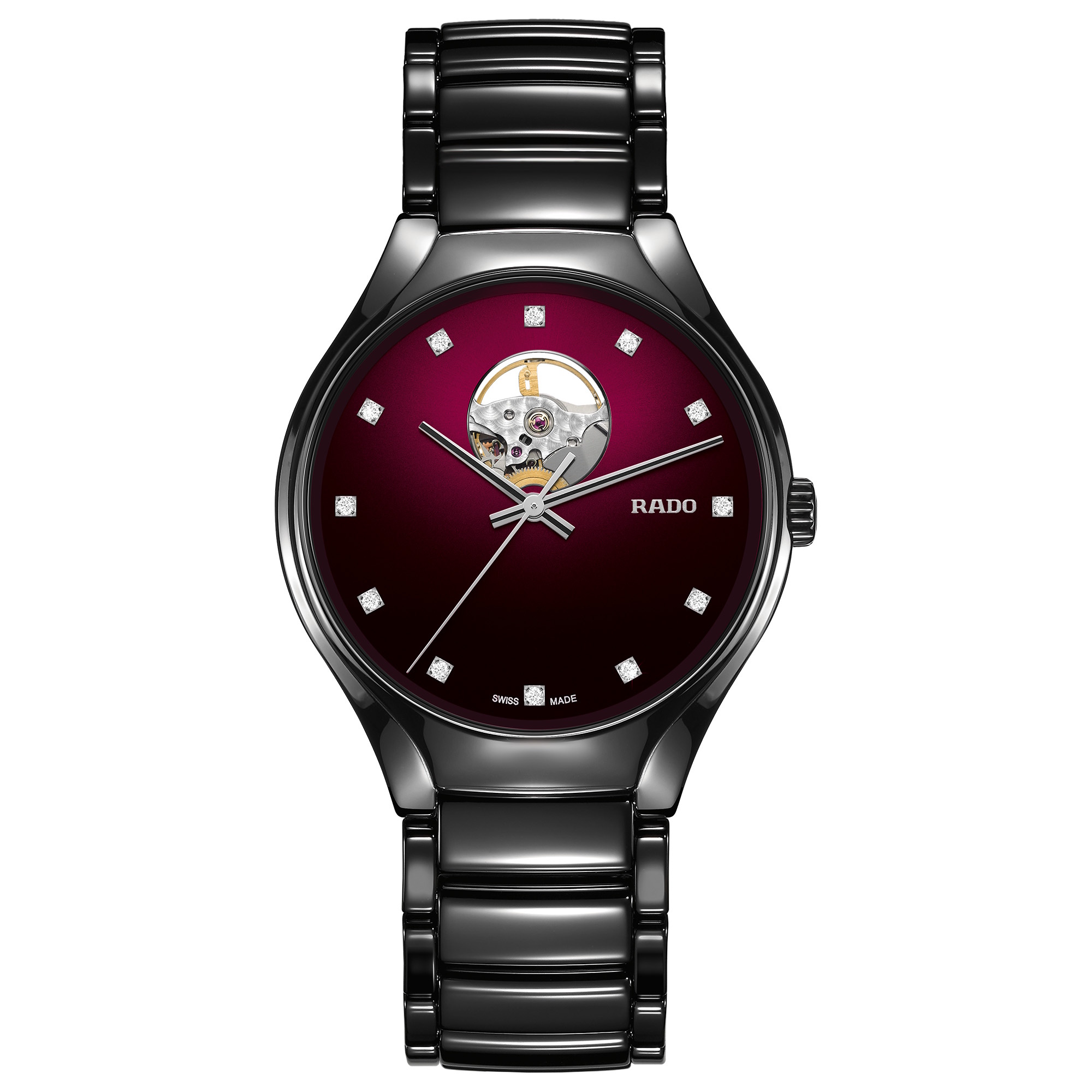 RADO True Square Automatic Open Heart Diamonds Limited Edition Blk Rhodium White Dial/High Tech Ceramic Strap
