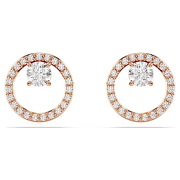 Swarovski Constella stud earrings Round cut, White, Rose gold-tone plated
