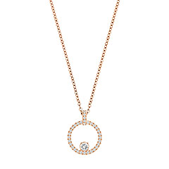 A stunning new interpretation of a timeless classic; the circle pendant. Highly refined, this design sparkles in clear crystal pavé. Rose gold-plated metal adds a modern touch. Wear with a longer pendant for an on-trend multi-length layered look. Th...