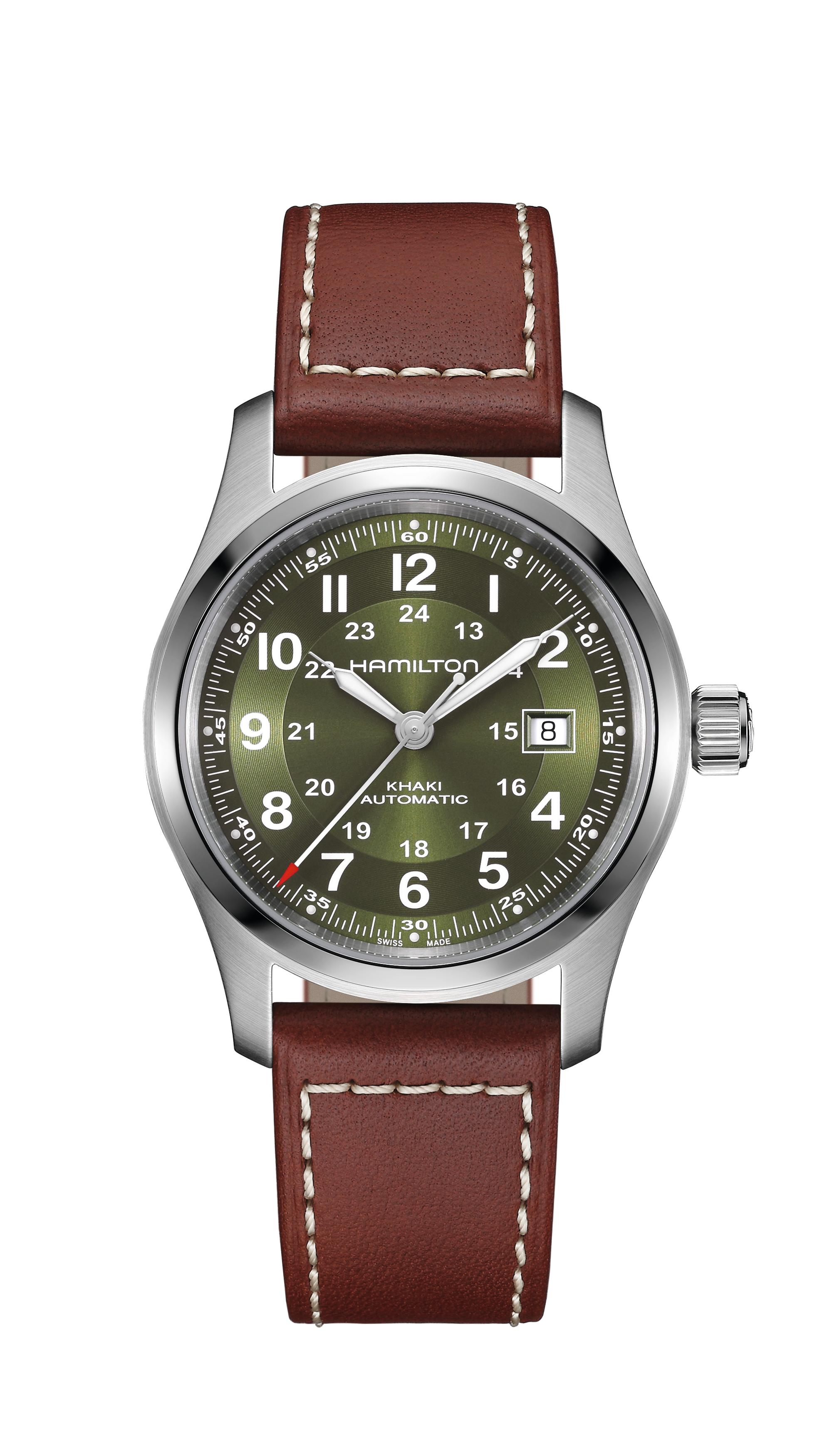Hamilton Khaki FieldAuto Green Dial Brn Lthr Strap