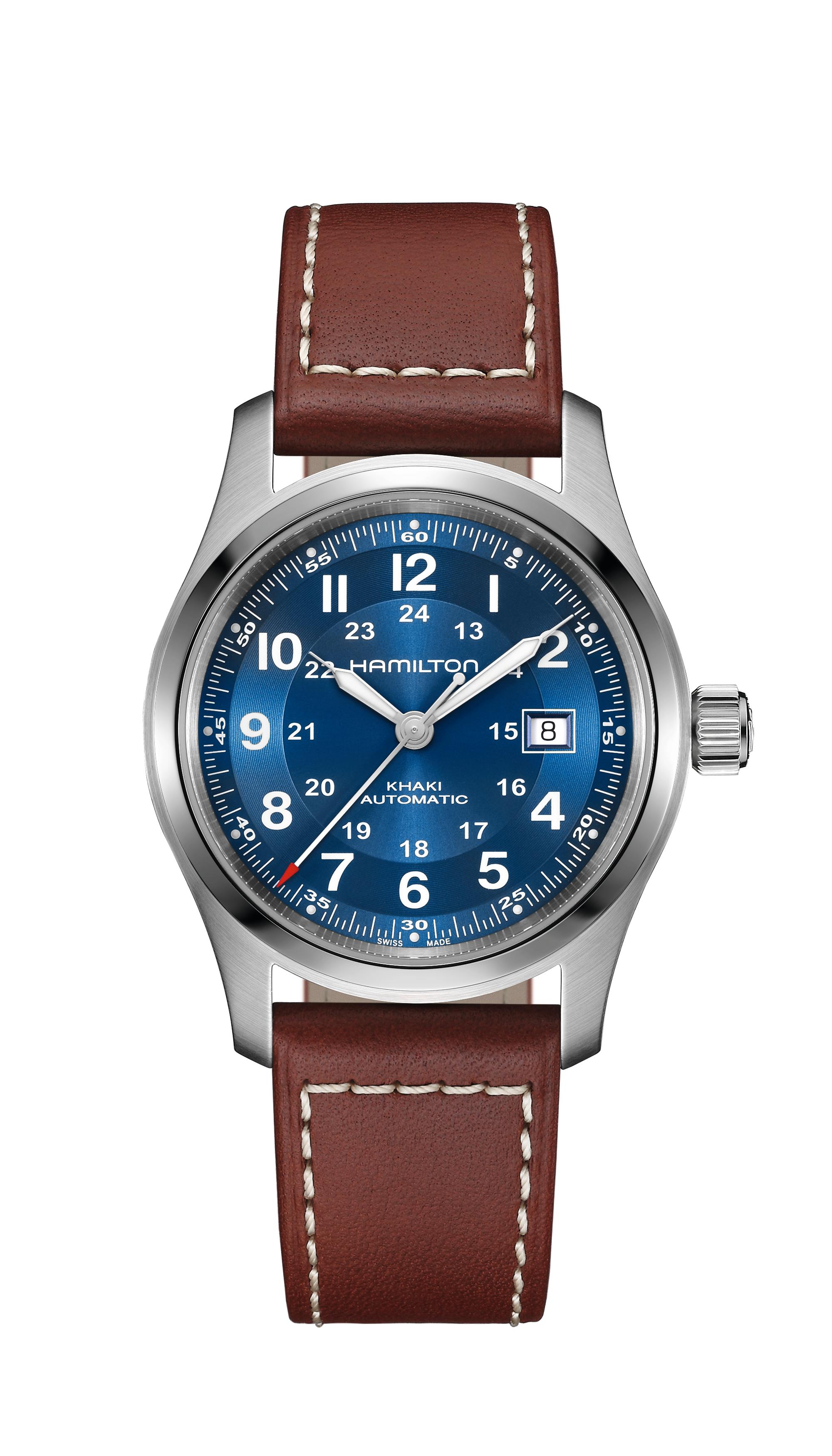 Hamilton Khaki FieldAuto 42mm Blue Dial Brn Lthr Strap