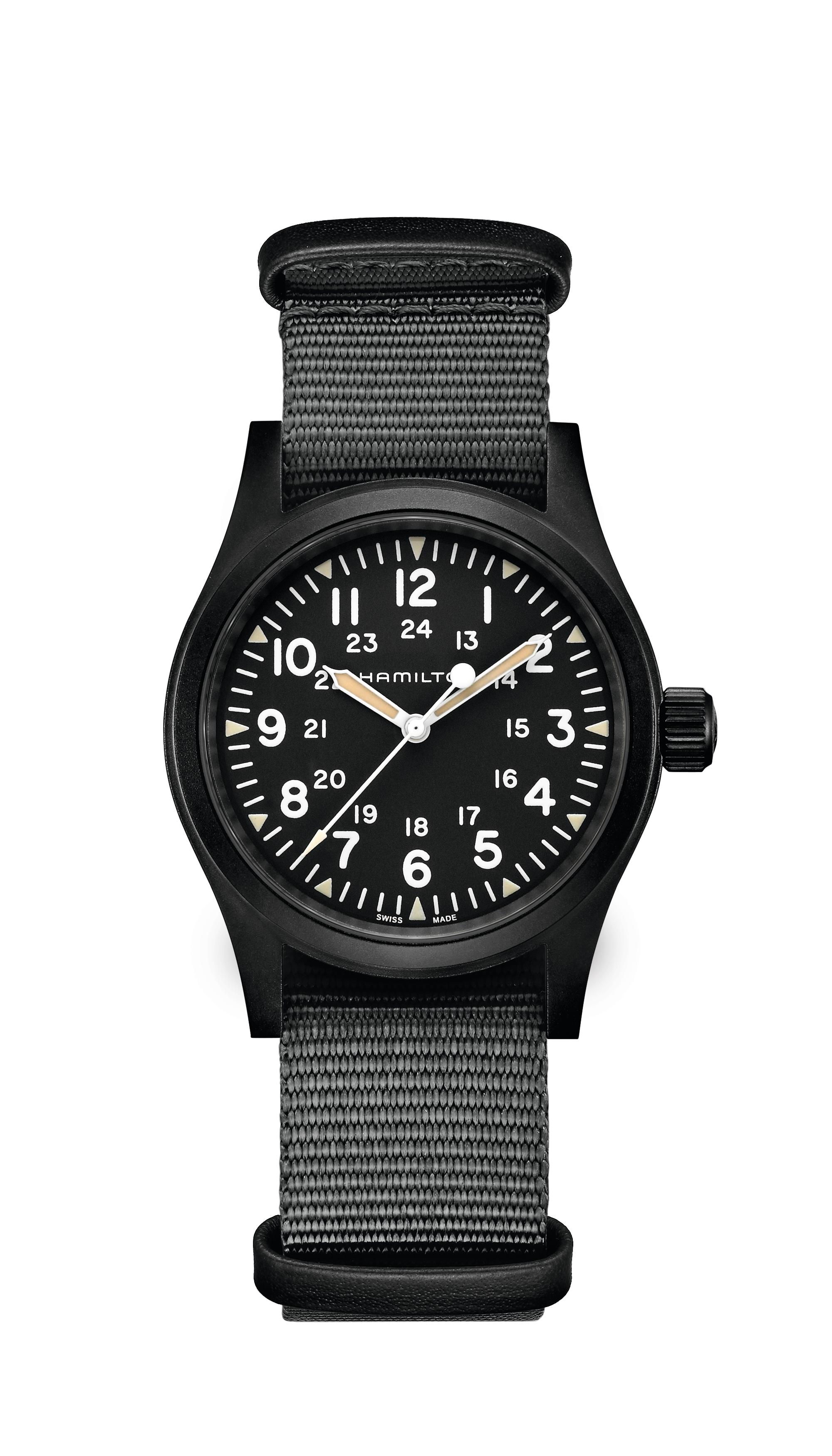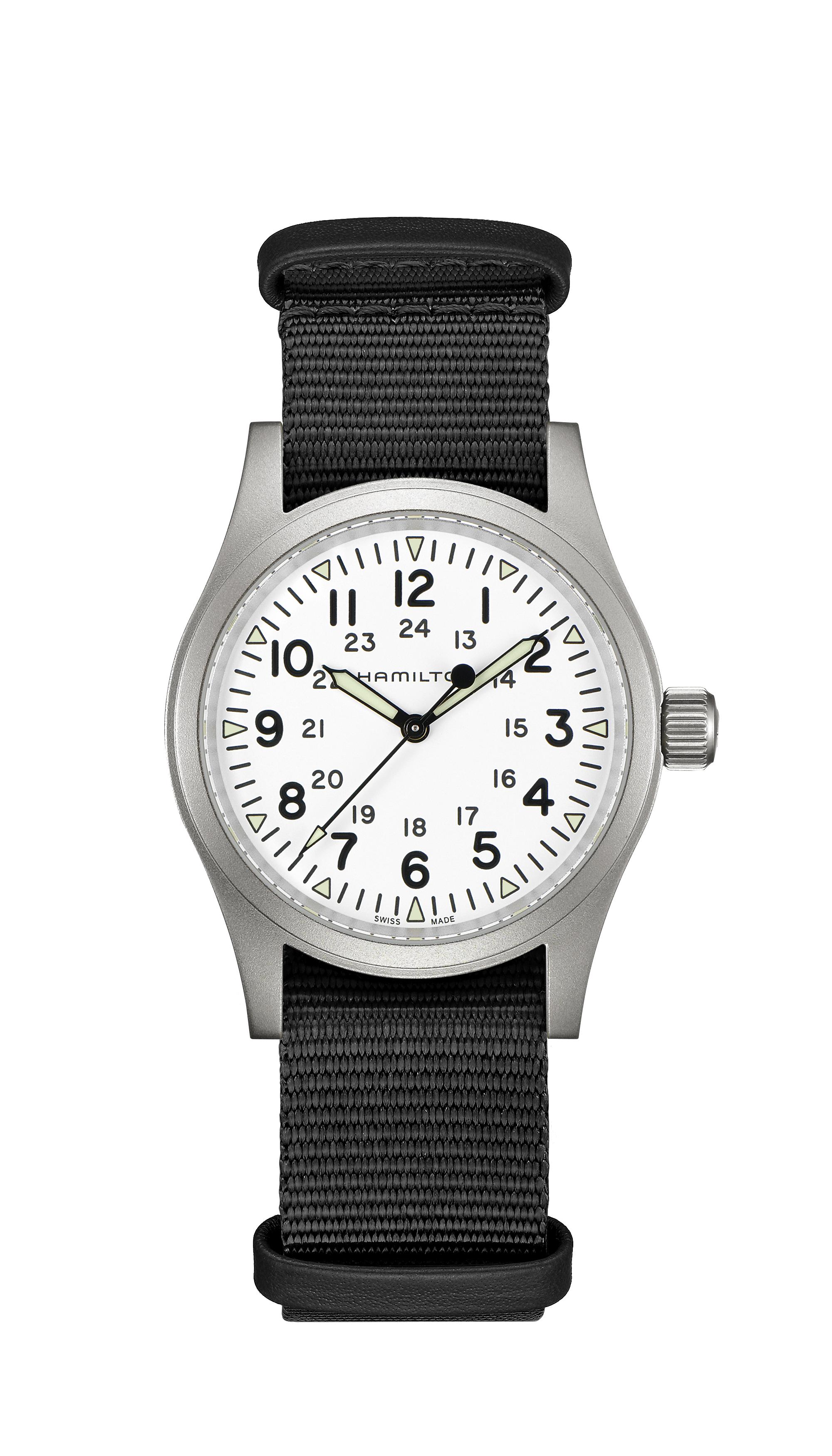 Hamilton Khaki Field Mechanical Wht Dial Blk Textile Strap