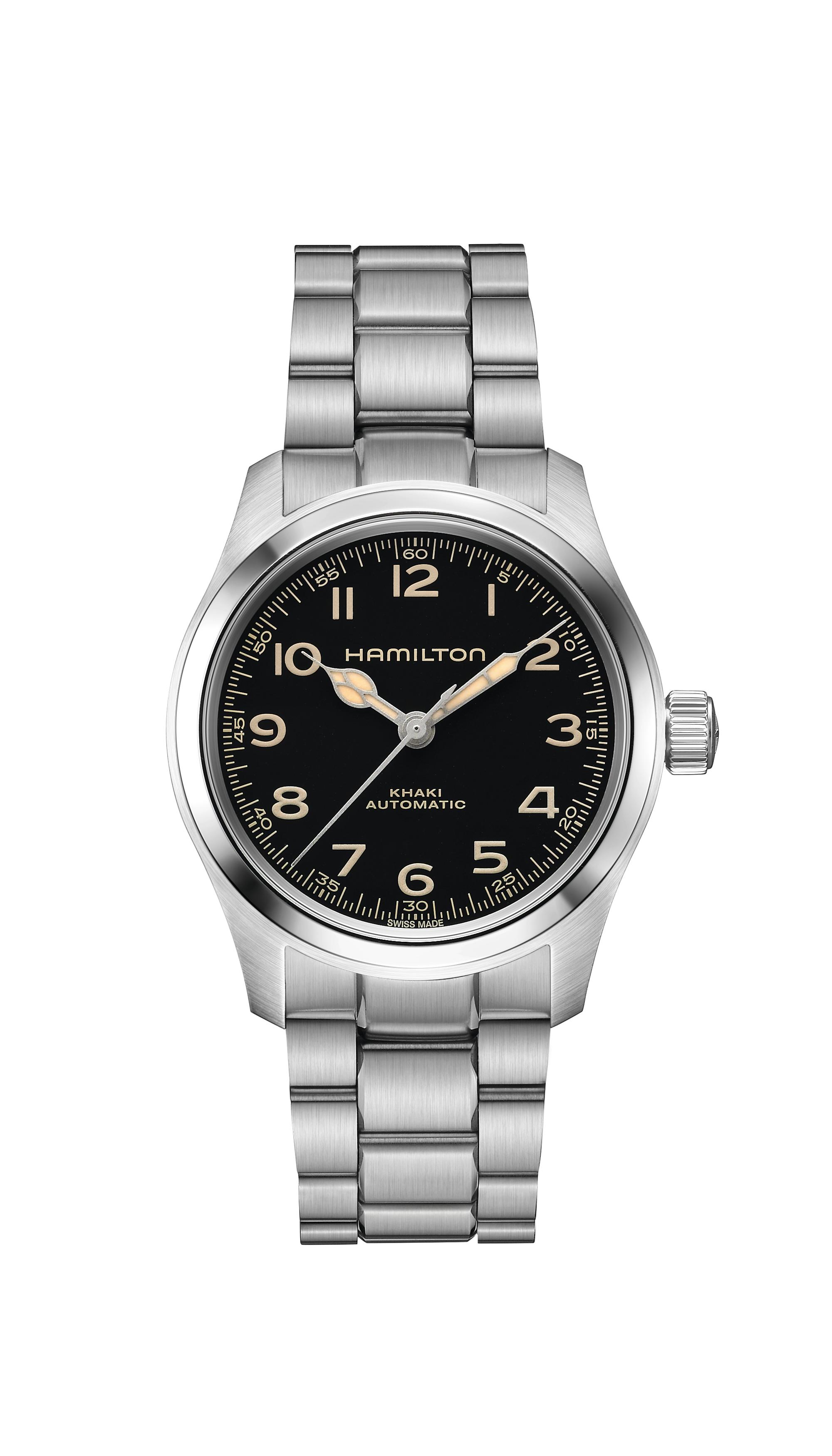 The original soldier’s watch is sportier than ever with a comfortable stainless steel bracelet. Powered by our exclusive H-50 handwinding movement, our latest Khaki Field Mechanical style won’t let you down. Rugged and reliable, this 38mm field w...