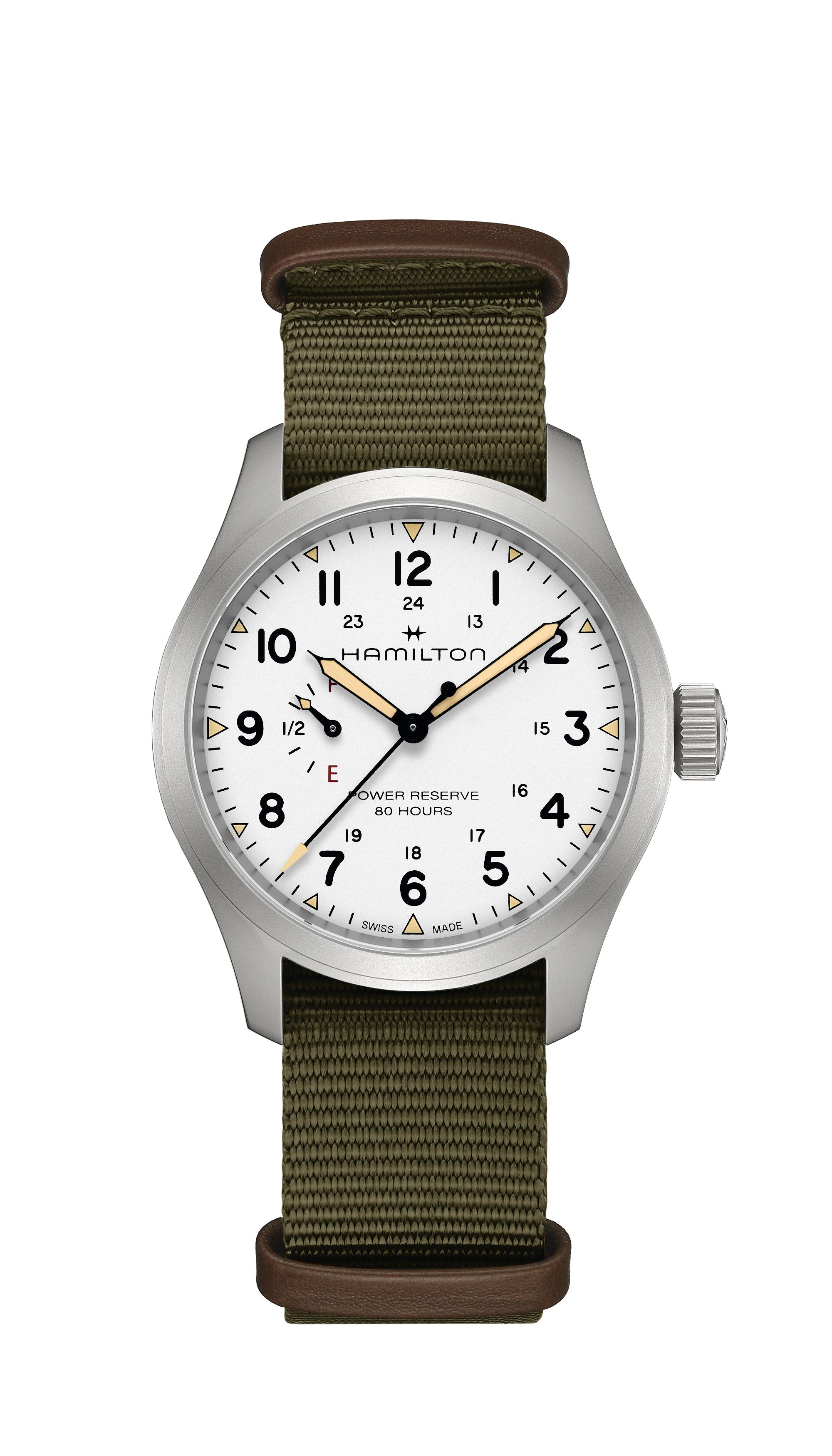 Hamilton Khaki FieldMechanical Power Reserve Wht Dial Textile Strap