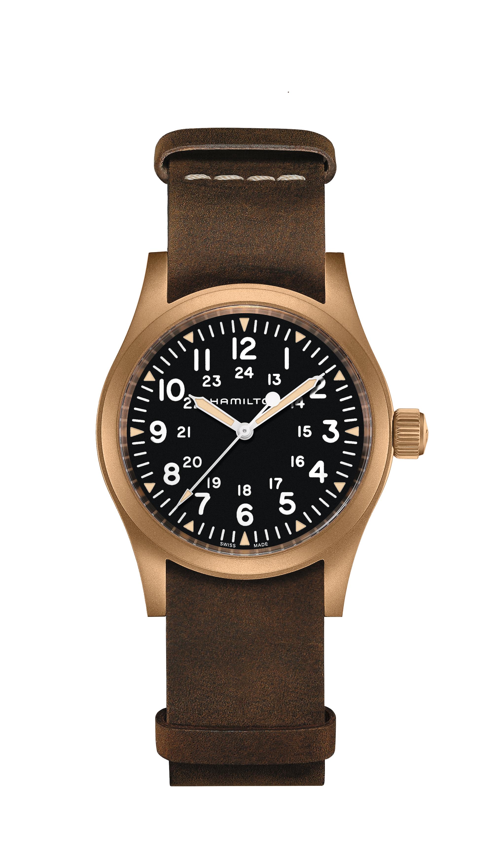 The original soldier's watch gets an original upgrade with Hamilton's first-ever bronze case. Each Khaki Field Mechanical Bronze has a unique story that will unfold with each wear as its case develops a distinct patina over time. Powered by our exclu...
