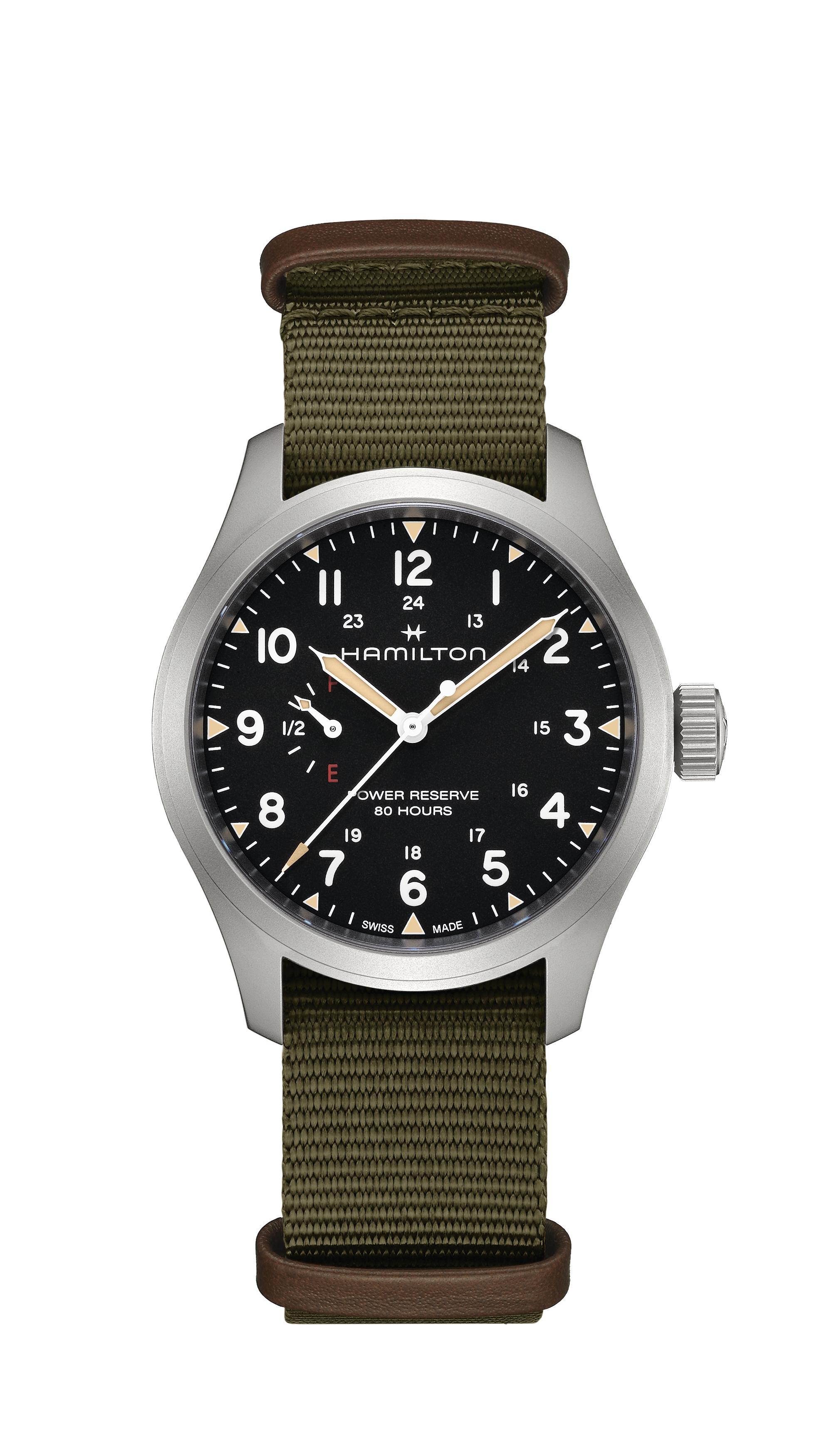 Hamilton Khaki FieldMechanical Power Reserve Blk Dial Textile Strap