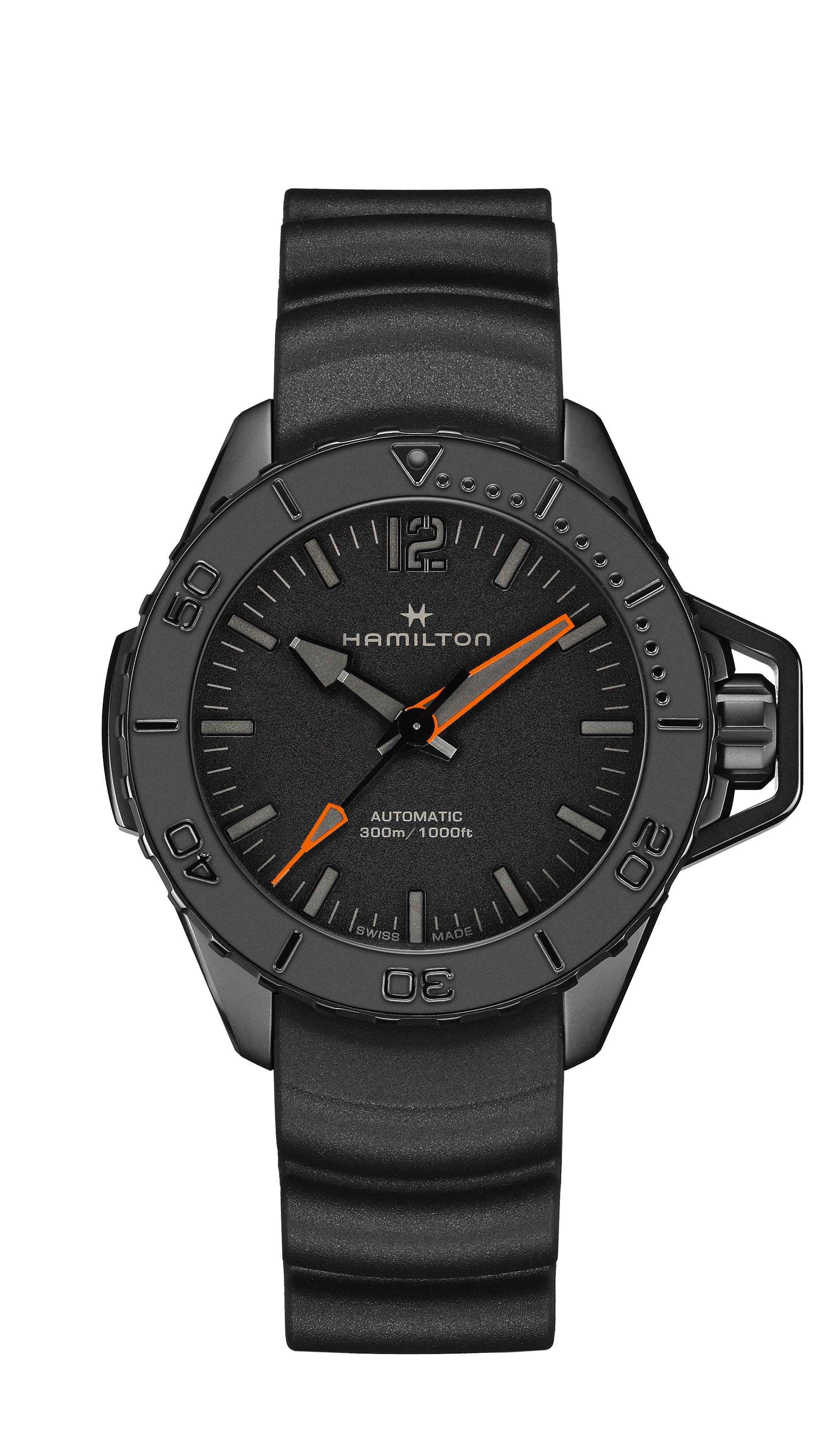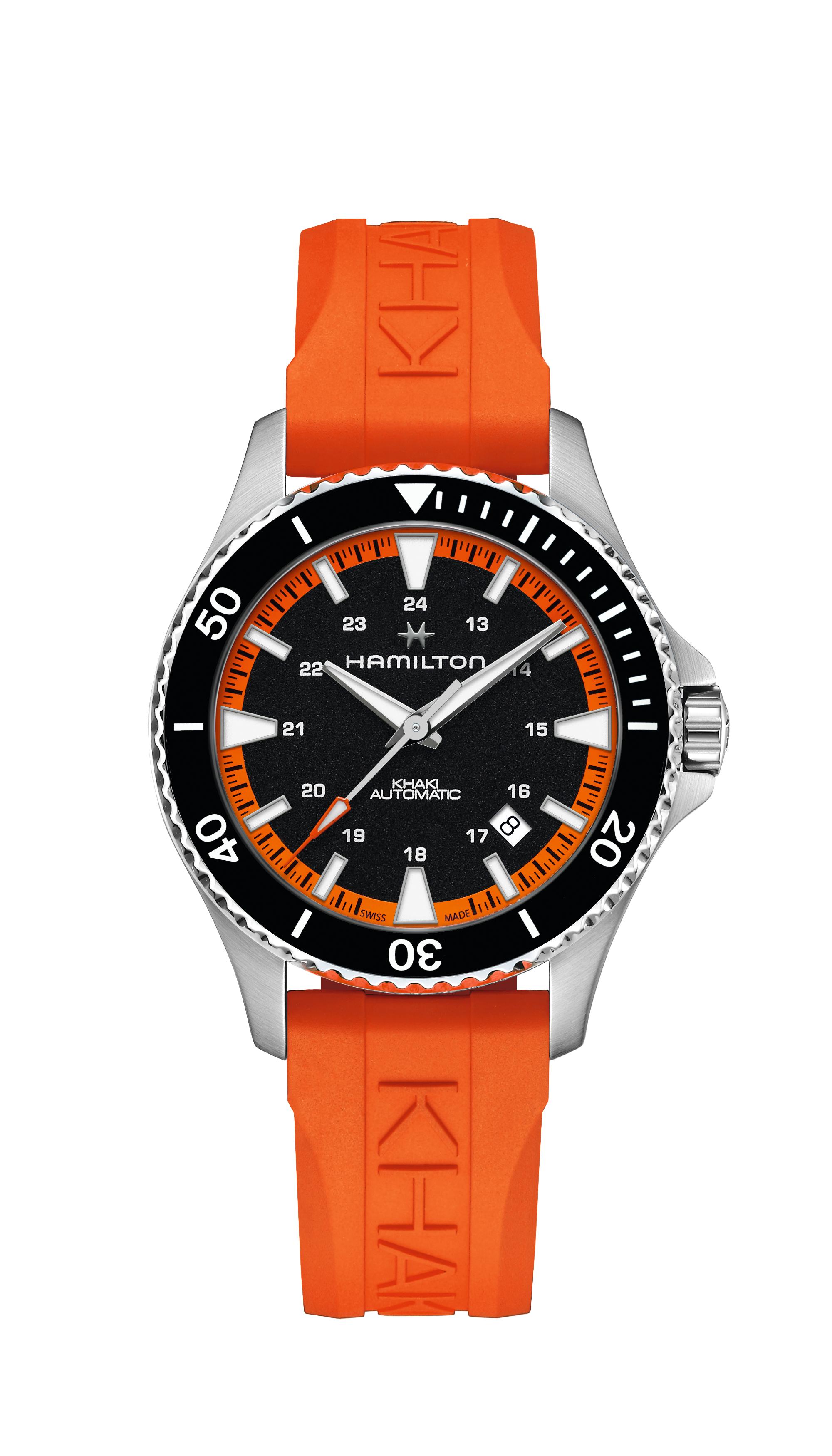 Hamilton Khaki Navy Scuba Auto Blk Dial Orange Rubber Strap