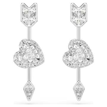 Swarovski Idyllia drop earrings Mixed cuts, Heart with arrow, White, Rhodium plated